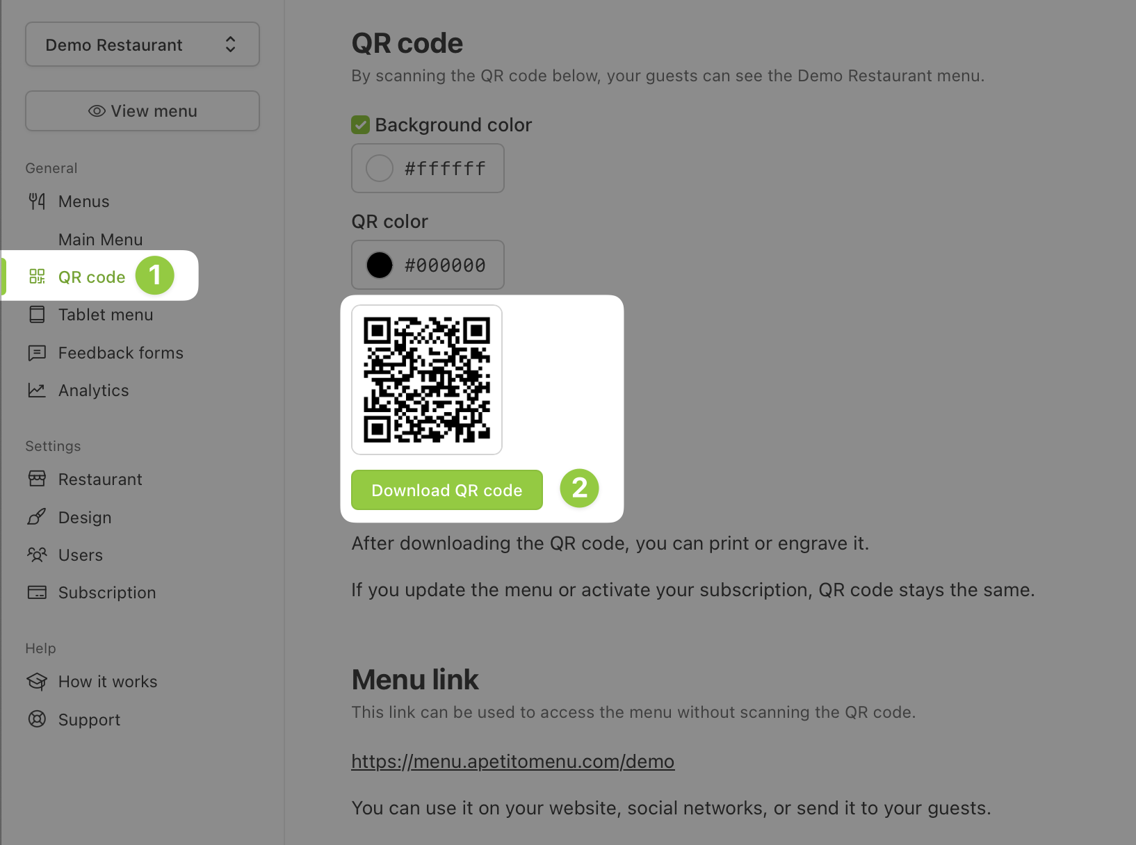These were the main steps to create your digital QR menu with Apetito Menu.
